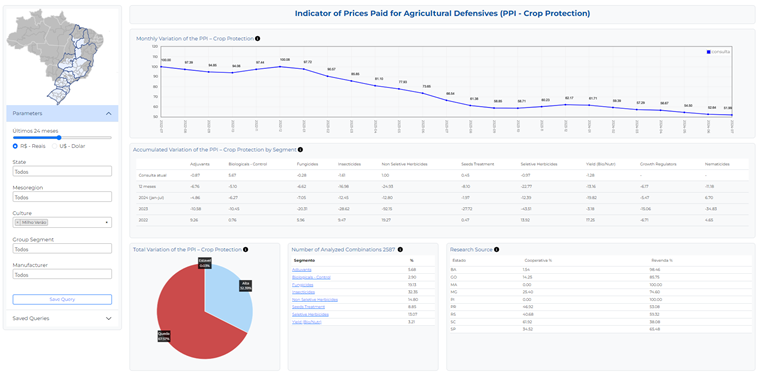 A plataforma caracteriza-se pela prestação do seguinte serviço: Indicador de Preços Pagos de Defensivos Agrícolas (IPP-Defensivos)